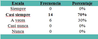 la tecnología. El 70% de los docentes encuestados manifiestan que utilizan casi siempre