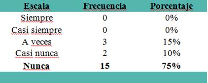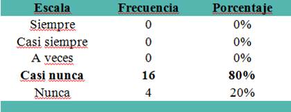 a sus alumnos. Un 10% de los docentes encuestados manifiestan que casi nunca utilizan los recursos