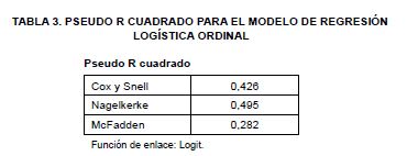 Asimismo se tiene la prueba de Nagelkerke con coeficiente 0,566, es decir, el 56,6 % estaría