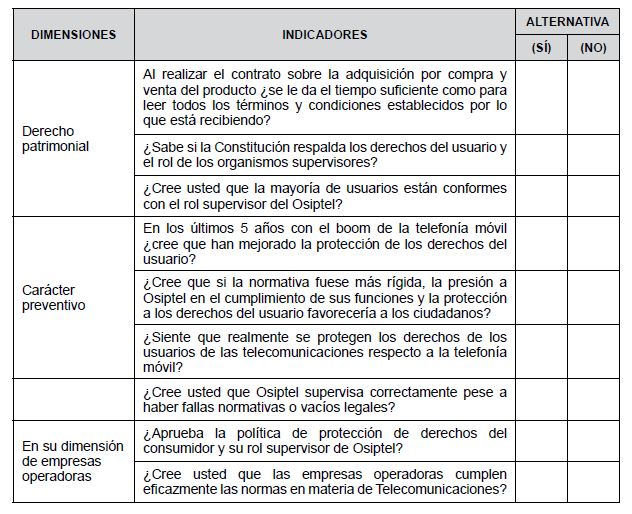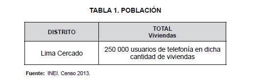 hundred and fifty telephony users from the Metropolitan Lima district, the applied instrument is