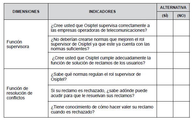a questionnaire, which allows collecting information on the perception of Osiptel’s function and