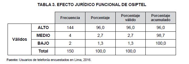 Functional Legal Effect of Osiptel in the Perception of Protection of Rights by Telecommunications Users
