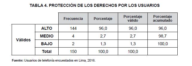 de los derechos de los usuarios de telecomunicaciones. Lima, 2016.