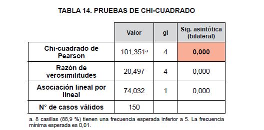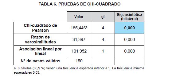 de hipótesis realizada con la prueba de Chi cuadrado, se obtuvo como valor de sig 0,000 <