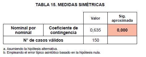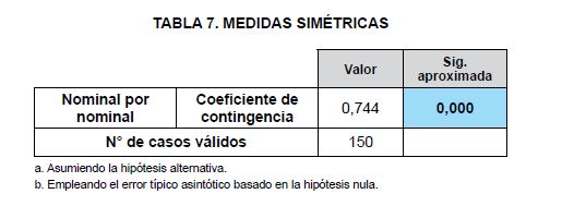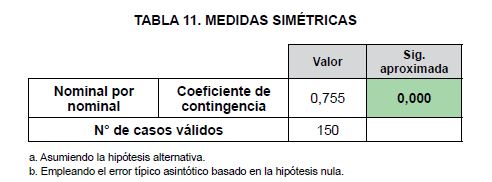 Como el coeficiente de contingencia es menor que 0,05 (0,000<0,05), rechazamos la hipótesis