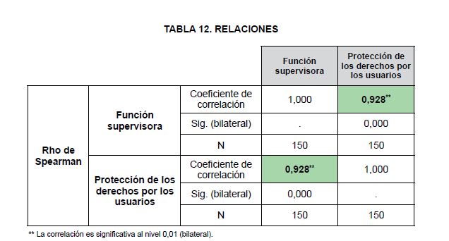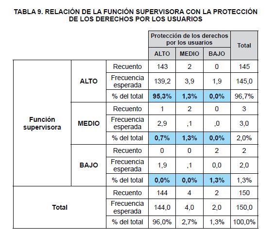 función supervisora, se establece un efecto negativo en la protección del derecho del usuario